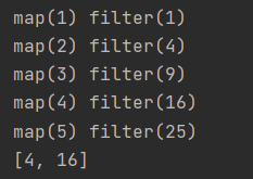 - map에 대한 처리가 끝난 후에 filter로 넘기기 때문에 실행 결과에서 중간 연산 결과가 존재함