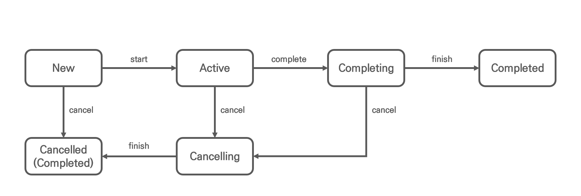 - cancel()을 이용하면 Cancelling 상태로 즉시 바뀌고 이후 Cancelled 상태로 바뀜