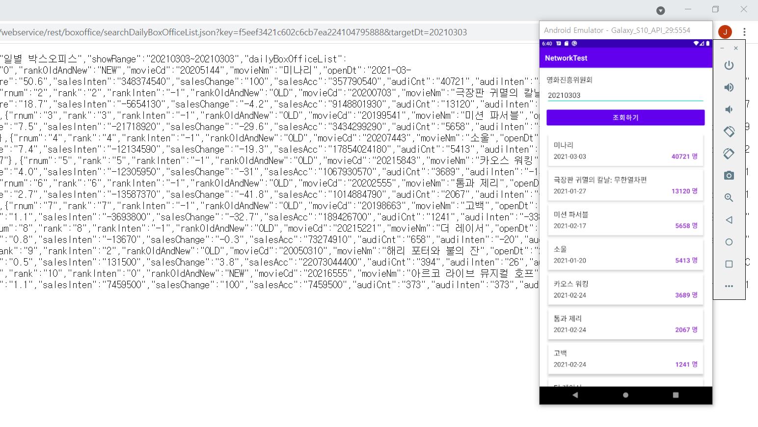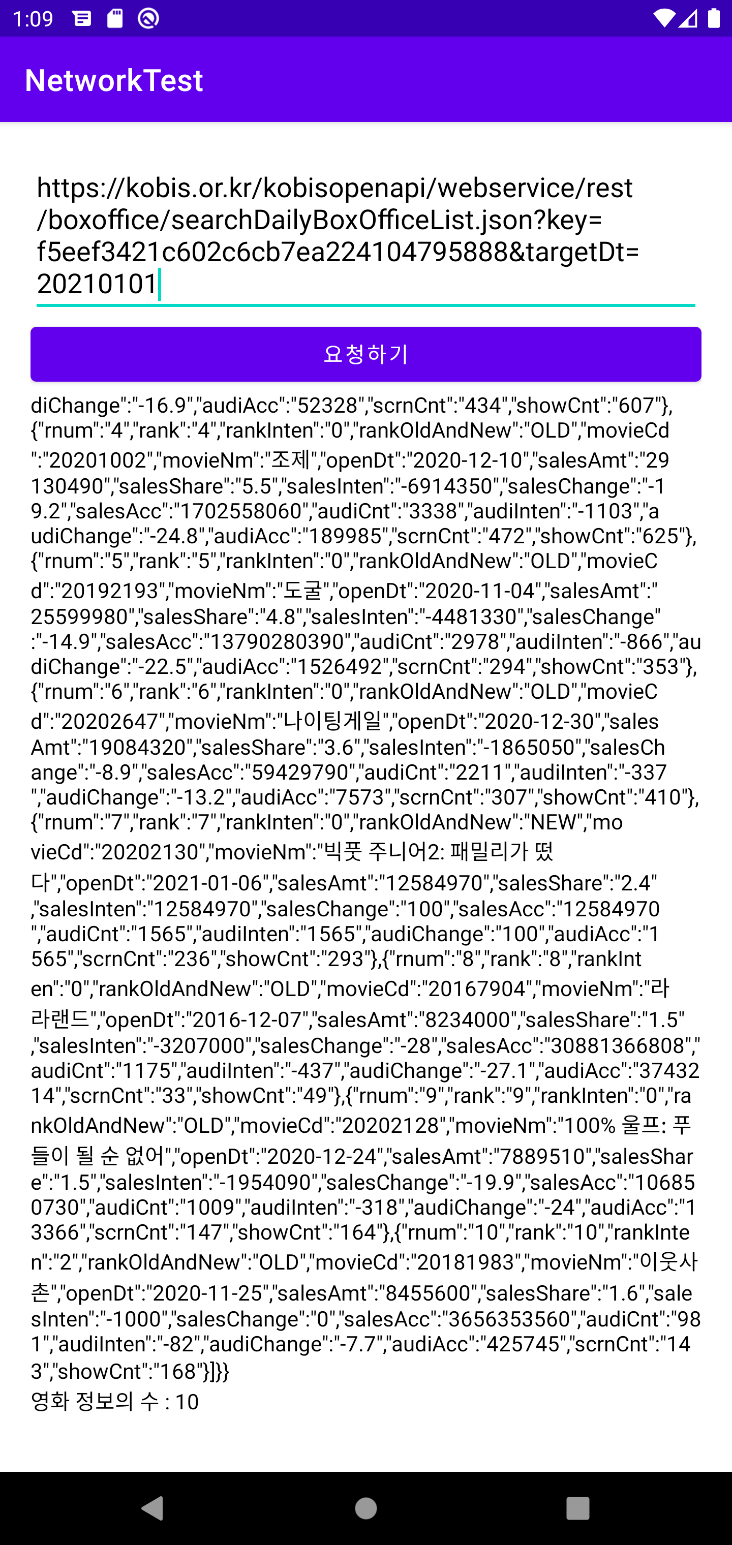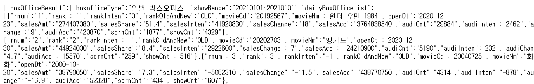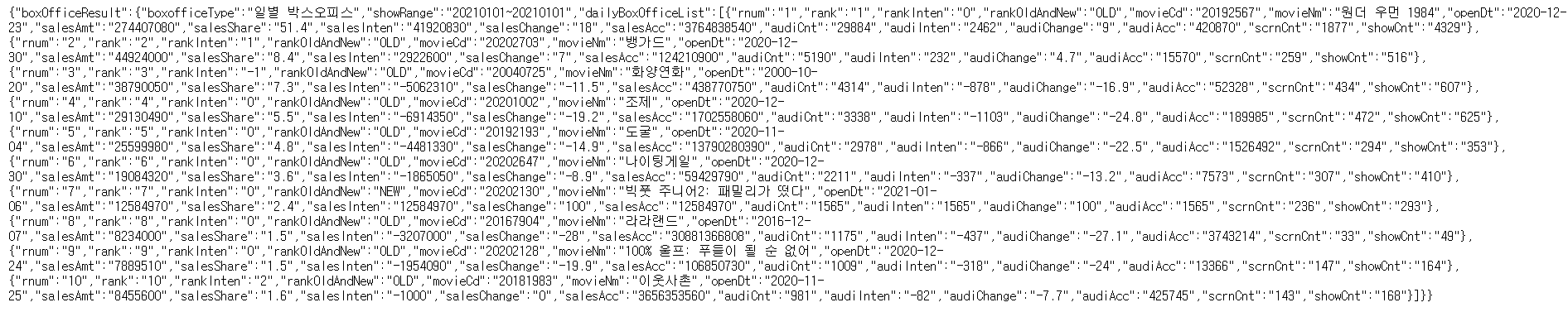 String url = "https://kobis.or.kr/kobisopenapi/webservice/rest/boxoffice/searchDailyBoxOfficeList.json?key=f5eef3421c602c6cb7ea224104795888&targetDt="+
