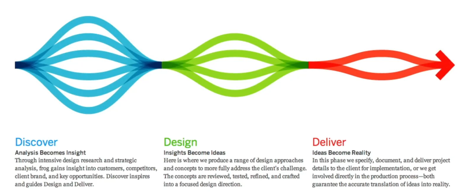 디자인 프로세스를 직관적으로 표현한 일러스트샌프란시스코의 Central Office Of Design의 Damien Newman이 제시한 다이어그램Damien Newman이 30초 이내에 디자인 프로세스가 가진 가치를 클라이언트에게 설명하고 납득시켜야 했던 상황을 직면했을 때 만들어낸 일러스트