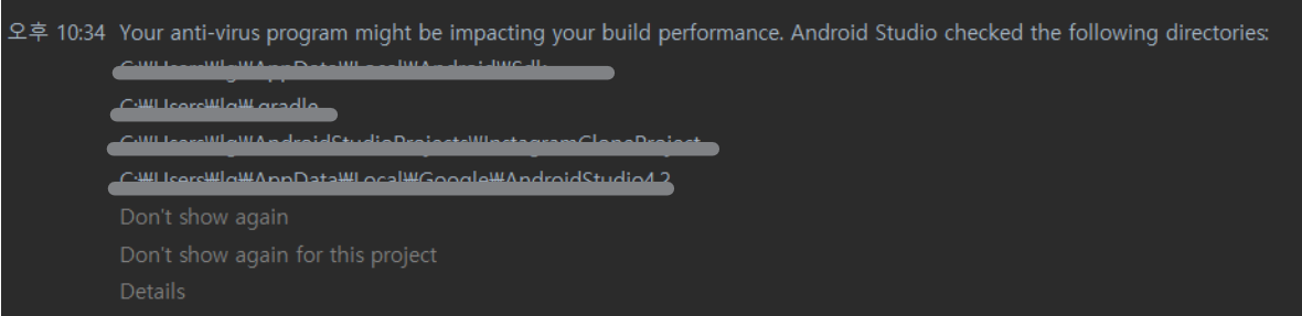 그래서 위의 stackoverflow의 답변처럼 Windows Security에서 검사 제외 항목으로 해당 폴더들을 추가하여 해결하였다.