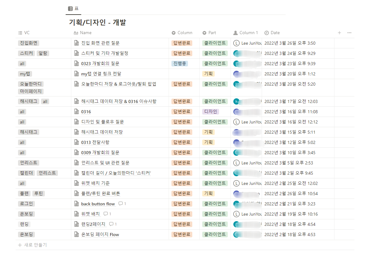 (기획자/디자이너) - PM - (개발자들) 이렇게 중간에서 소통하는 것이 좋다고 하셔서 기획이나 디자인에서 생기는 궁금증이나 의견은 바로 PM님에게 남겼다. 그러면 위와 같이 PM님이 따로 논의사항을 남겨두시기도 하고, 가끔 설명하기 너무 많거나 빨리 답변을 받아야 하는 부분은 내가 남겨놓고 PM님에게 전달하기도 했다! 이렇게 회의하거나 논의하면서 많이 받았던 코멘트가 '이건 생각하지 못했네요', '아 그럴수도 있군요' 였던 것 같다. 아무래도 빨리 기획/디자인을 하다보니 예외 상황이 많이 고려되지 않았어서 항상 물어보거나 제안을 많이 했던 프로젝트였던 것 같다😊