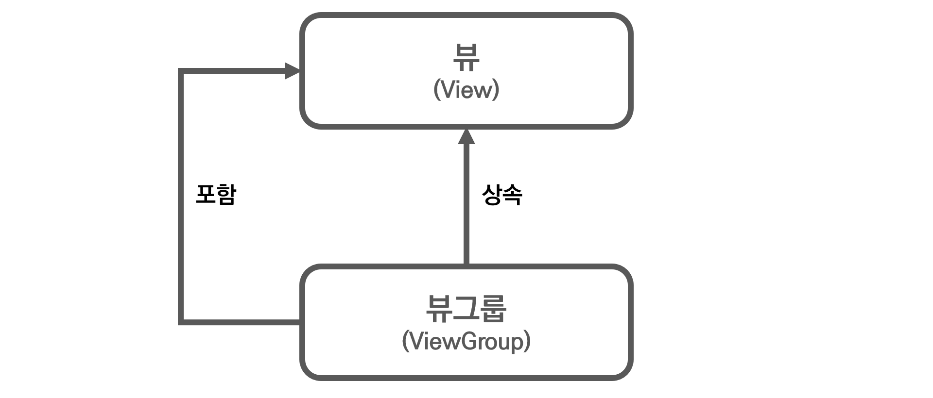 - ViewGroup안에 또 다른 ViewGroup을 넣고 다른 View와 동일하게 다루도록 만들 수 있음 (ViewGroup은 View를 상속)