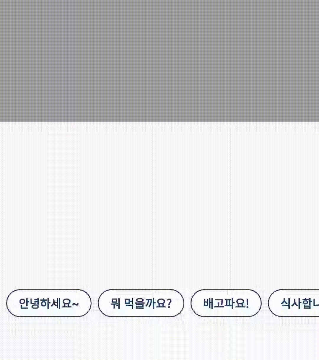 "안녕하세요~", "뭐 먹을까요?", "배고파요!", "식사합니다!", "빨리 고릅시다~", "시작해요!" )