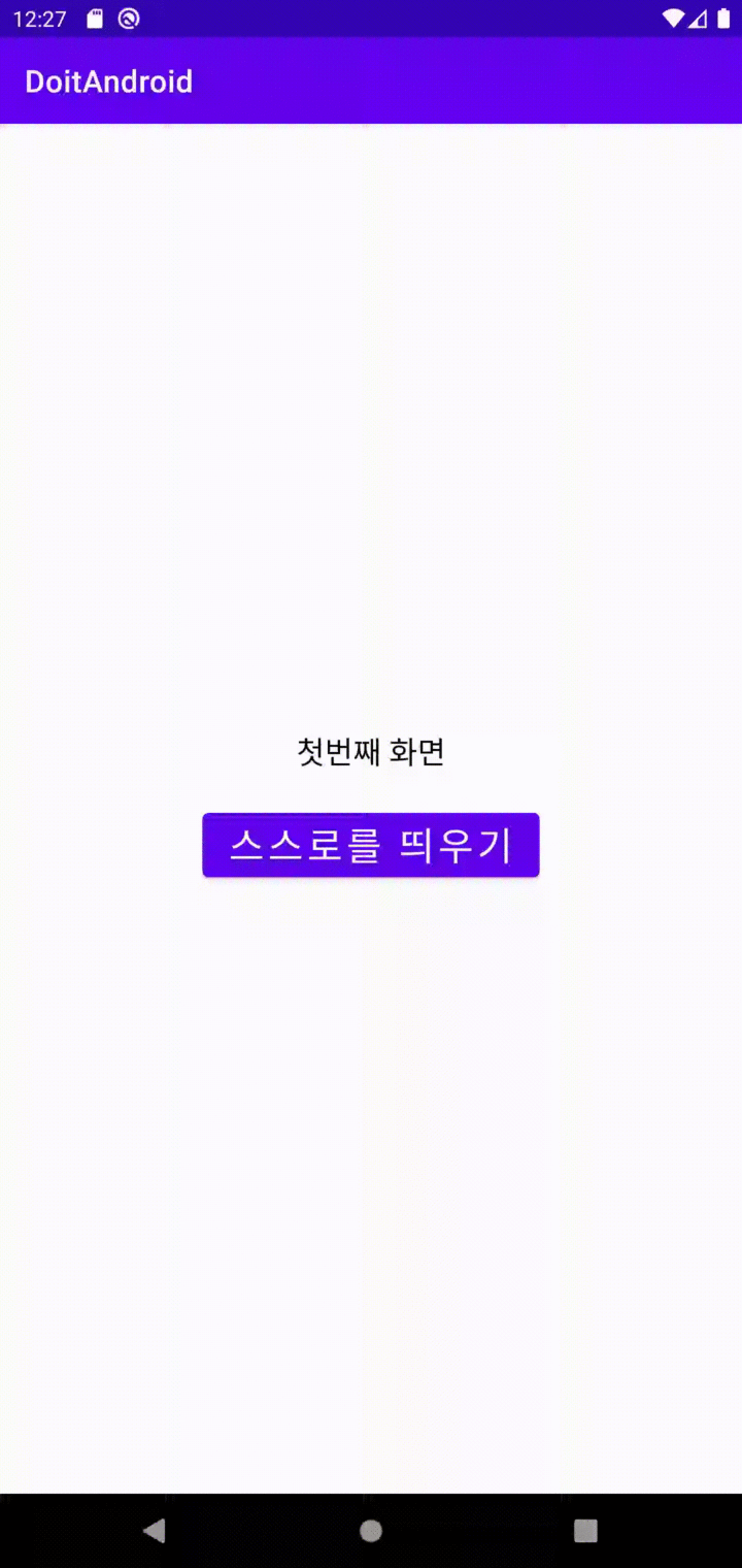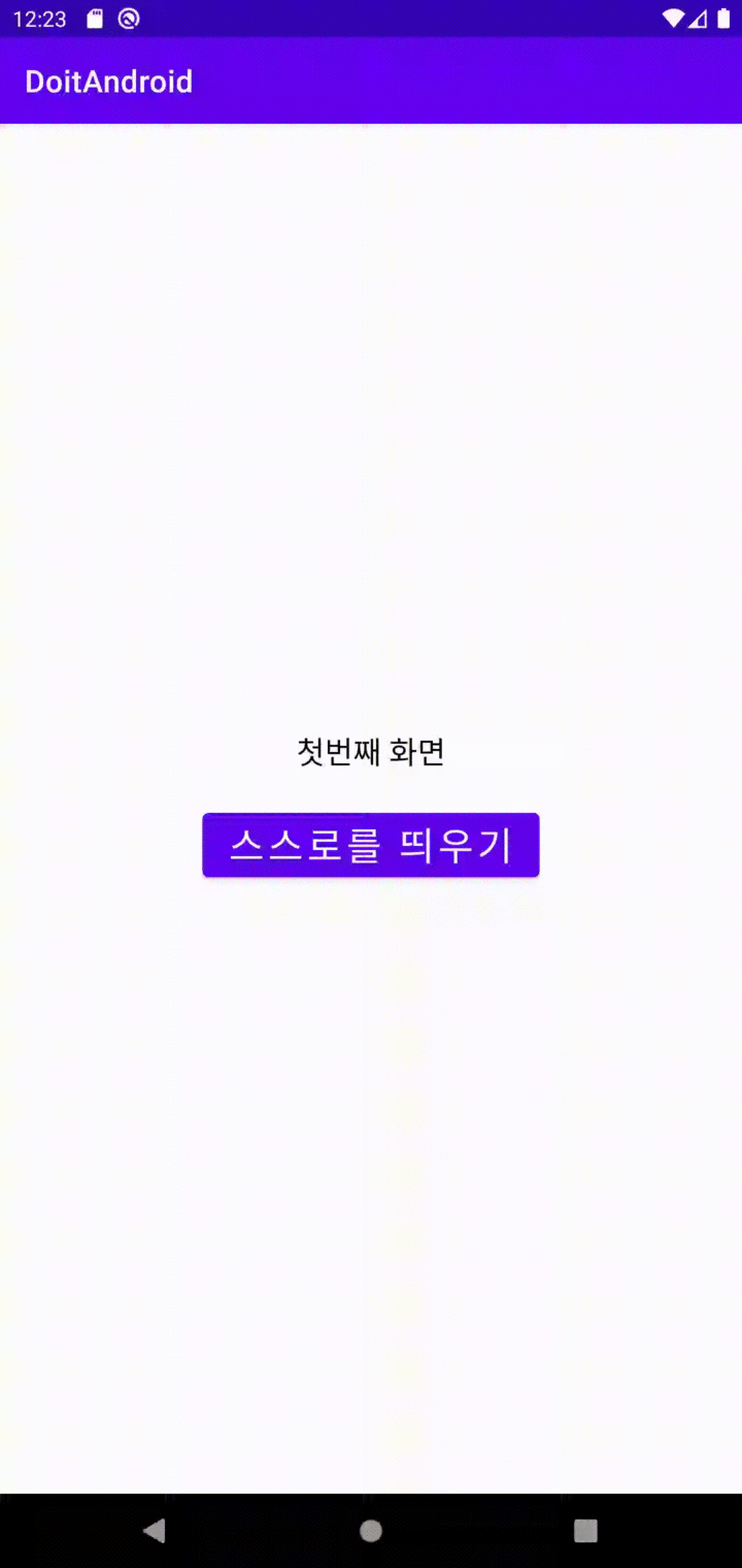 - 앱을 실행하고 버튼을 눌러도 새롭게 화면이 생성되지 않고, 시스템 [Back] 버튼을 눌렀을 때도 바로 앱 화면이 사라짐
