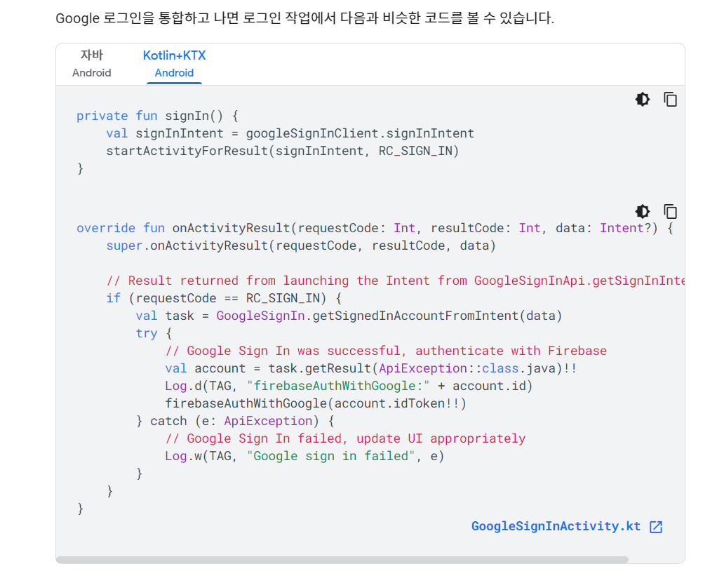 Firebase의 공식 문서에서도 아직 startActivityForResult()를 사용하고 있는 것을 확인할 수 있습니다!