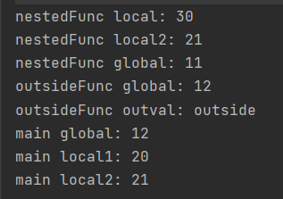 - main() 블록의 local1과 nestedFunc() 블록의 local1은 서로 다른 변수임