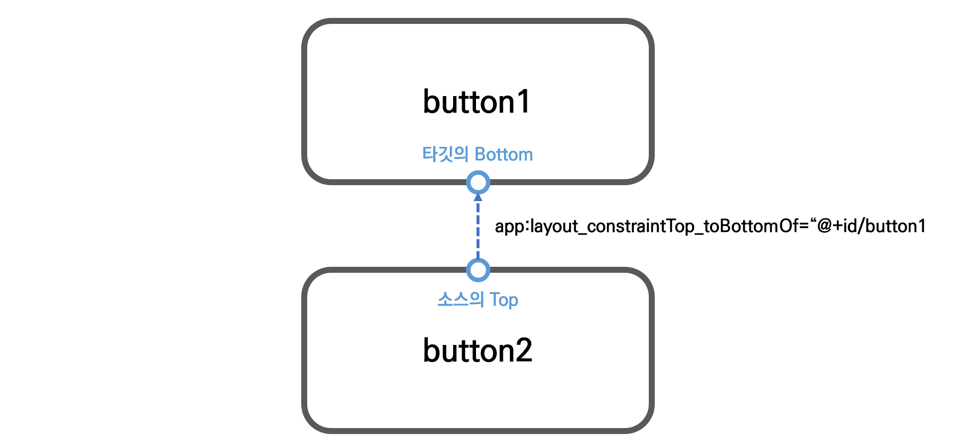 - app:layout_constraint[소스 View 연결점]_[타깃 View 연결점] = "[타킷 View의 id]"