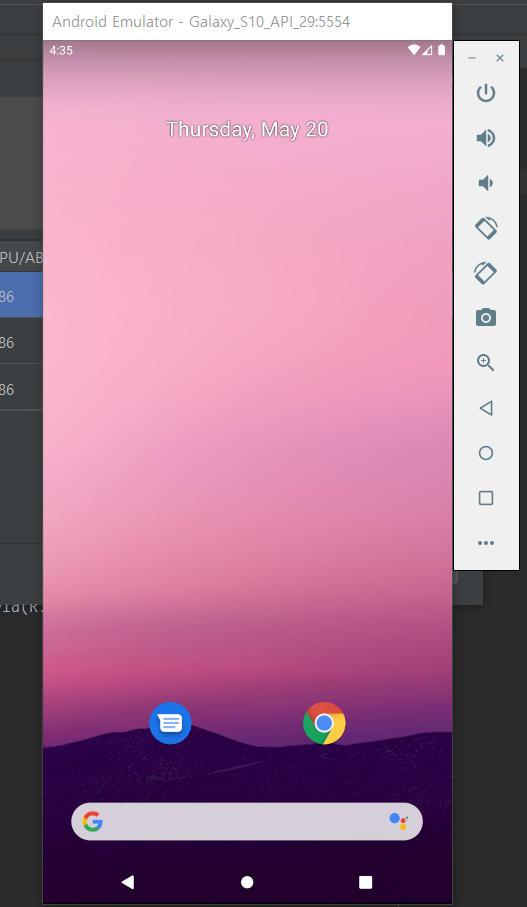에뮬레이터를 보면 핸드폰 기기처럼 디바이스 모양이 나타난다. 에뮬레이터의 디바이스 프레임을 없애기 위해서는 에뮬레이터 등록 단계 마지막 부분에서 Device Frame 부분의 체크를 해제해야 한다. 나는 이 에뮬레이터가 더 깔끔해서 체크 해제하는 것을 선호한다.