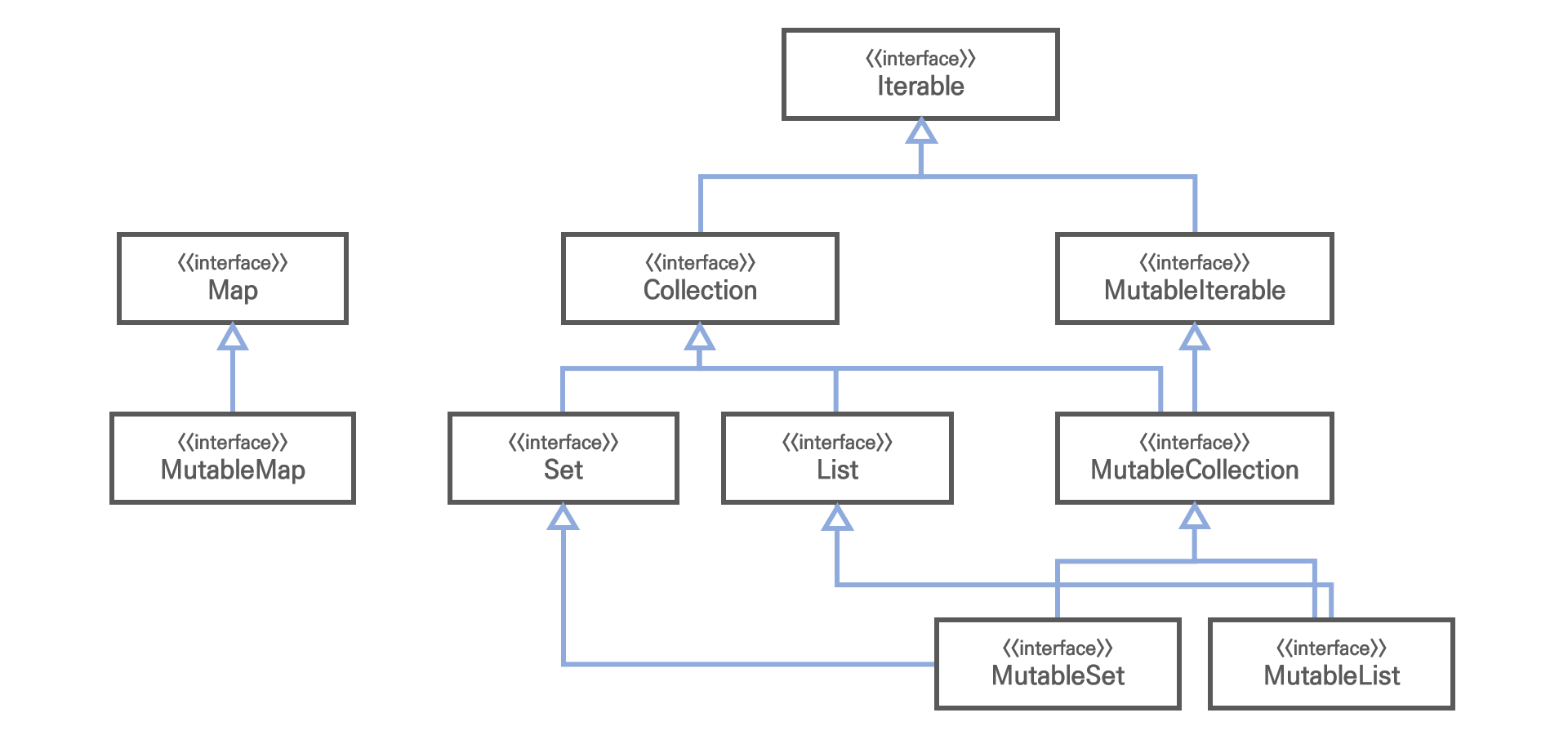 - 코틀린의 컬렉션은 자바 컬렉션의 구조를 확장 구현한 것